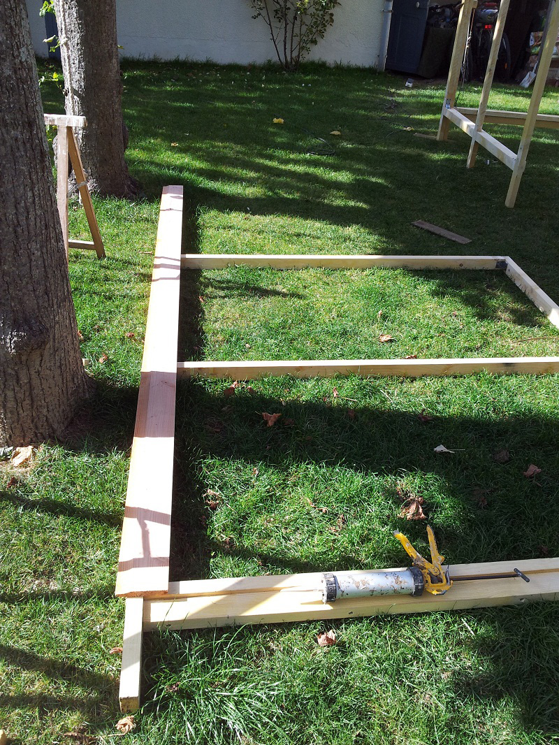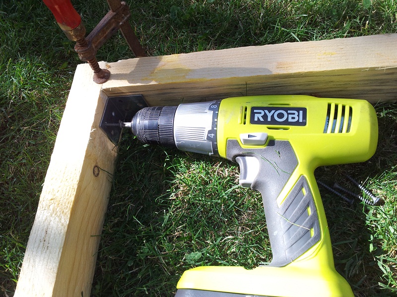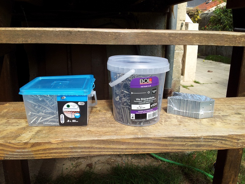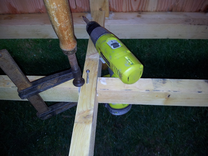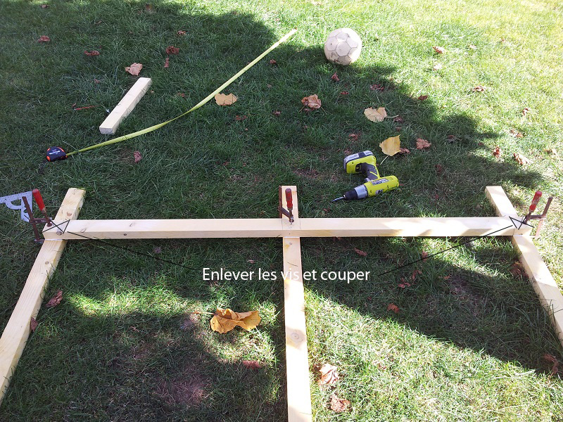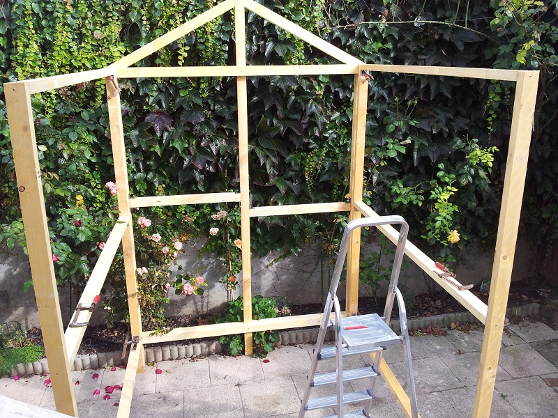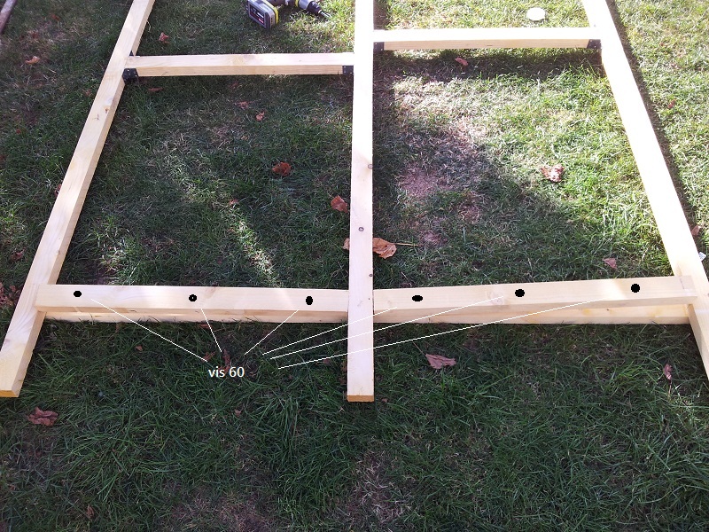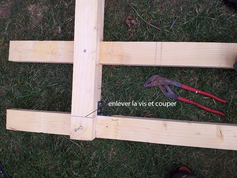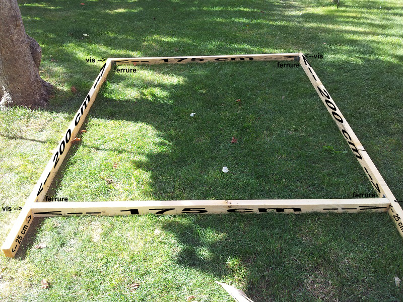 Mettre des ferrures d'angles aux angles intérieurs des 2 rectangles de côté Ajouter des montants entre les poteaux de côté Coller et visser  |